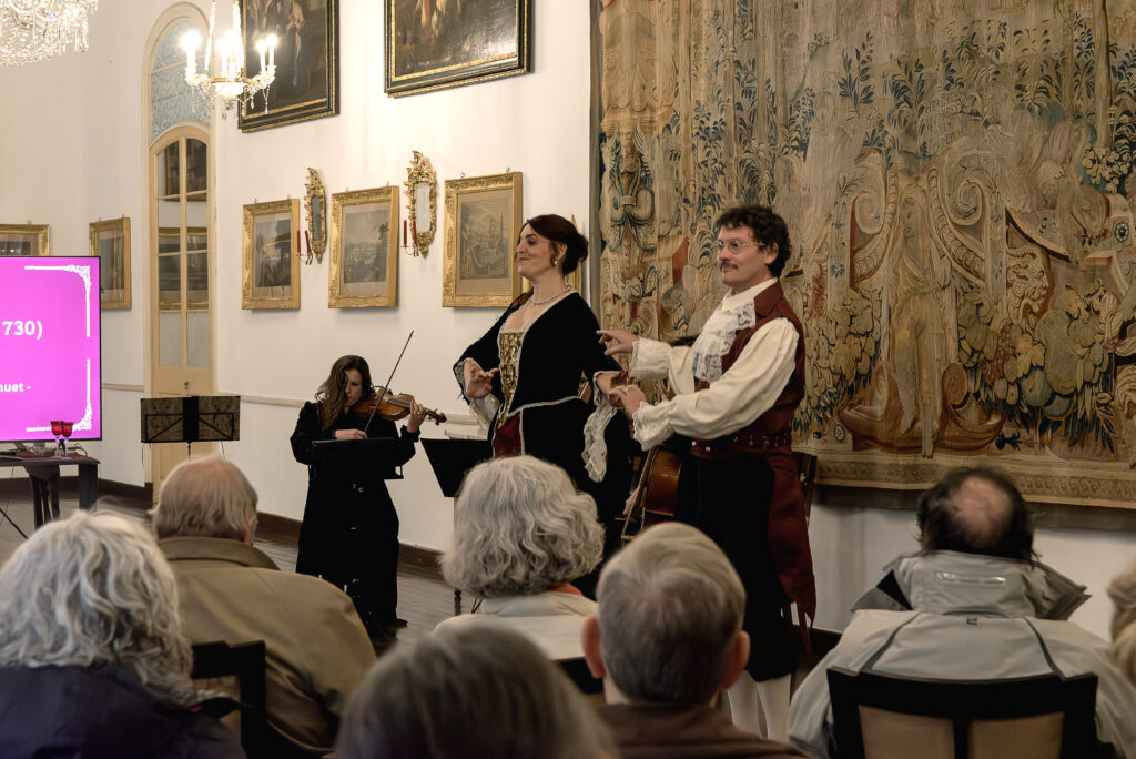 Per altra banda, la música de saló va ser la protagonista de la vetllada de dissabte. L’ensemble de música antiga, Il Gesto Armonico, amb Eva Febrer i Blanca Coll (violí), Jaume Fabregat (viola) i Dimitri Kindynis (baix) va interpretar una selecció de peces conservades a l’arxiu històric del palau. Un repertori que va traslladar al públic als segles XVIII i XIX.